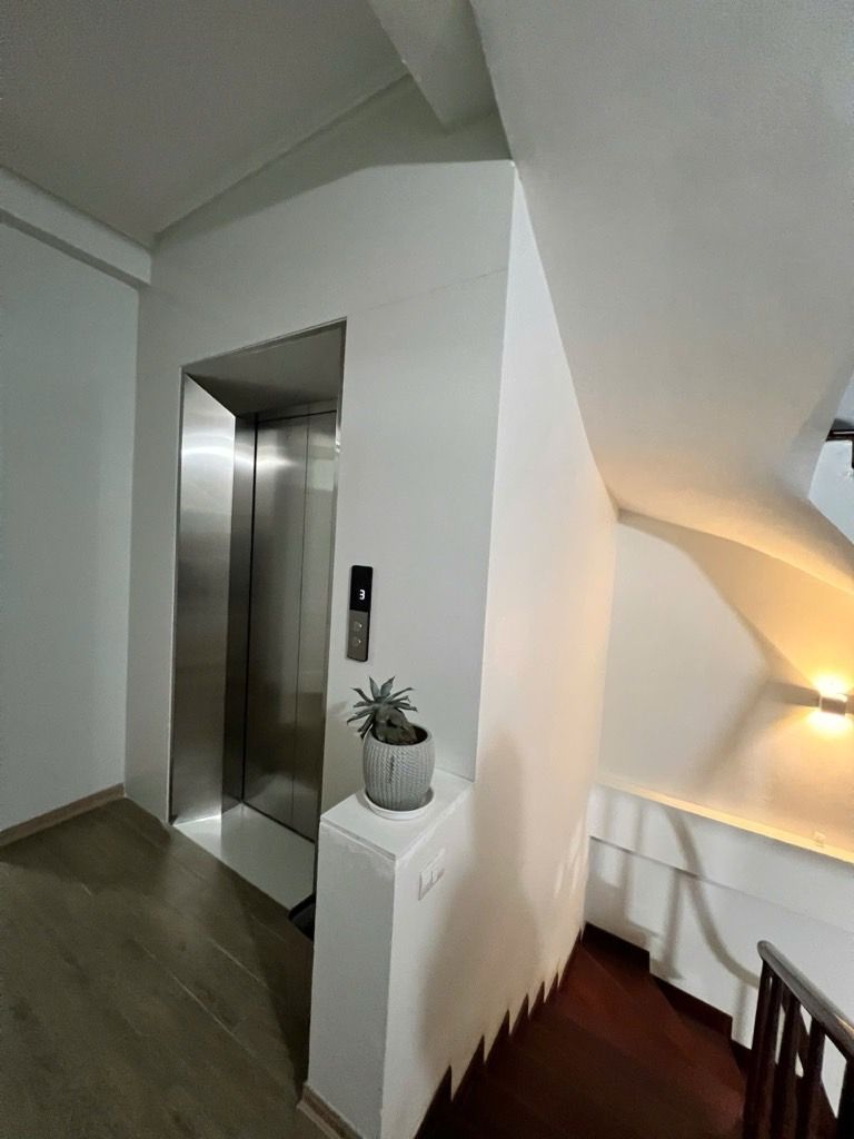 Thiết kế: Thang bộ, thang máy 650kg nhập khẩu, vệ sinh ở giữa.